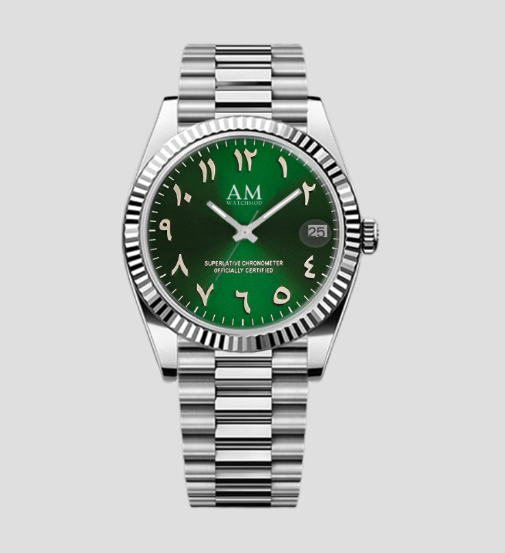Oto model Datejust Arabic Green – Zainspirowany kultowym designem Datejust i wyposażony w renomowany mechanizm TMI NH35. To zegarek klasy premium, który łączy doskonałość wykonania z niezawodnością.