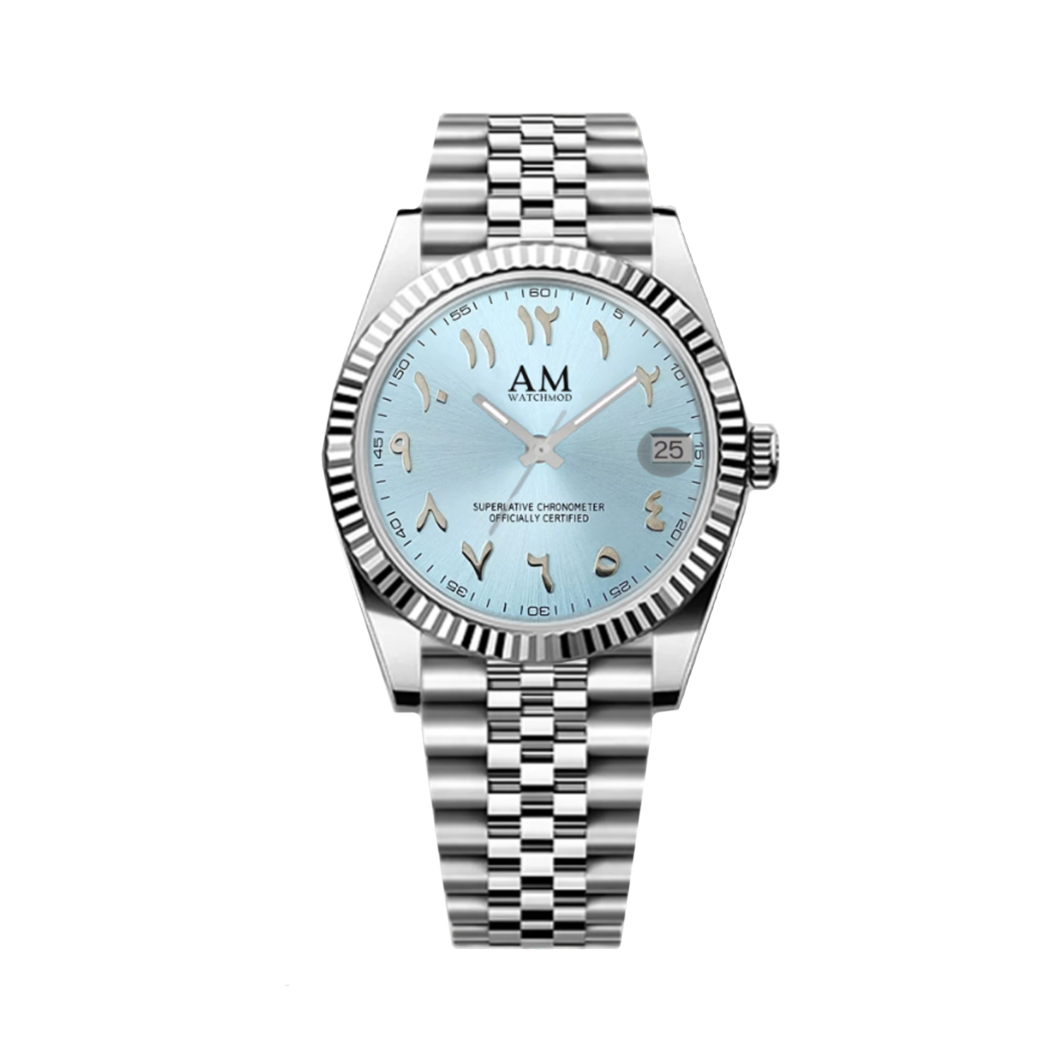 Oto model Datejust Arabic Sky blue – Zainspirowany kultowym designem Datejust i wyposażony w renomowany mechanizm TMI NH35. To zegarek klasy premium, który łączy doskonałość wykonania z niezawodnością.